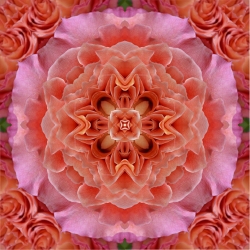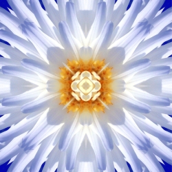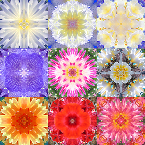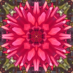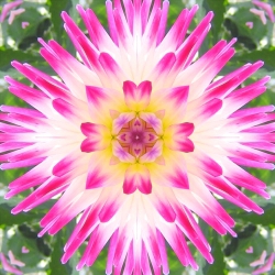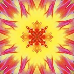 Betrachte das Blütenmandala sorgfältig in all seinen Einzelheiten. Beobachte die Feinheit der Farben und Strukturen.